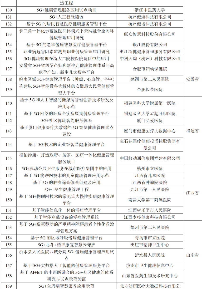 根据《工业和信息化部办公厅国家卫生健康委员会办公厅关于组织开展5G+医疗健康应用试点项目申报工作的通知》(工信厅联通信函〔2020〕270号)有关要求,按照“宽进严出,优中选优”的整体工作思路,经项目申报、专家初审、复审等程序,近日,工信部和国家卫健委公示5G+医疗健康应用试点项目名单。公示时间为2021年8月17日至8月23日。